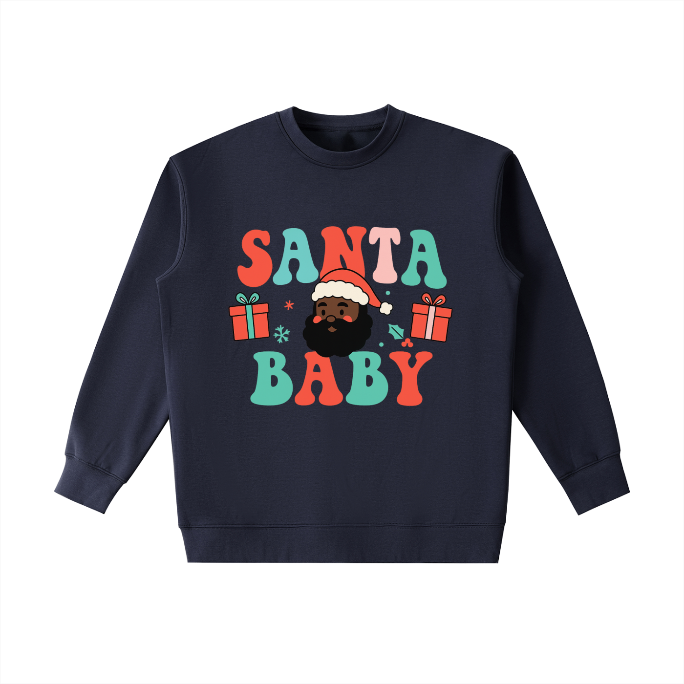 A festive, cozy crewneck featuring a joyful Black Santa design — cute, colorful, and perfect for holiday season slay.